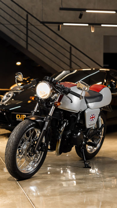 Moto customizada, banco duplo com formato de monoposto, recém revisada e nada a ser feito. Visitas apenas sob agendamento.